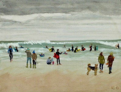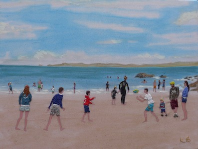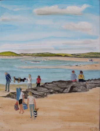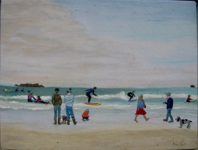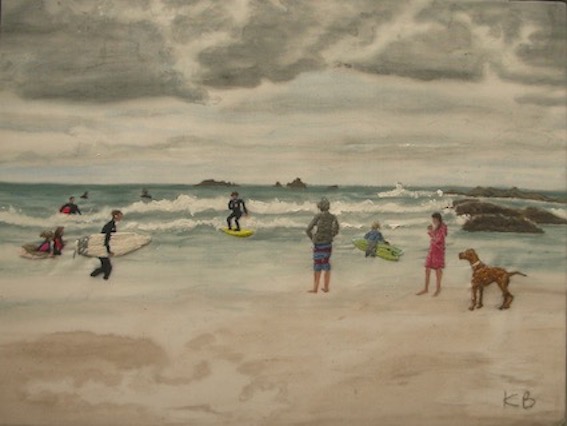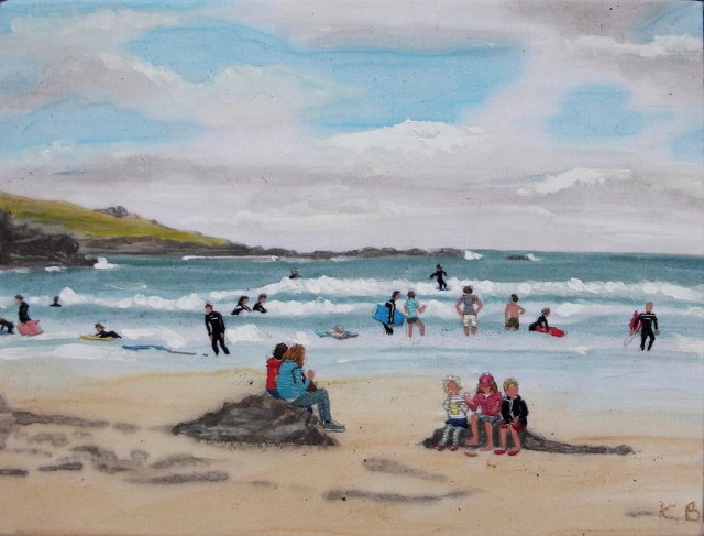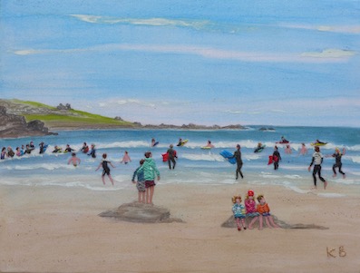 One of the good things about lockdown is it’s given youngsters who would otherwise be at school the opportunity to brush up on their surfing skills here Harlyn. Just down the road from The Padstow Studio in Duke Street where you can sea this picture.